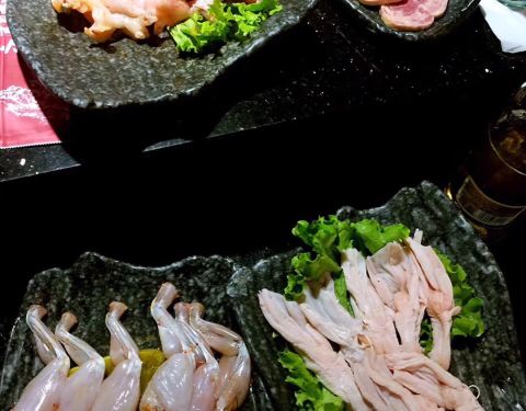 - 主要有肉类、鱼虾、小章鱼、丸子、各类菜、天妇罗炸虾、寿司等,我们去得晚,食材补充较慢,泡了一天...