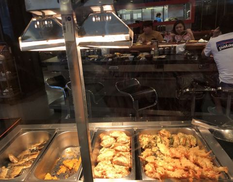 每次来泰国都要吃一下,价格便宜,火锅里面牛肉猪肉都有,要早点来,不然是要排队的,天妇罗大虾也是自助,可以随便吃,寿司做的一般般。