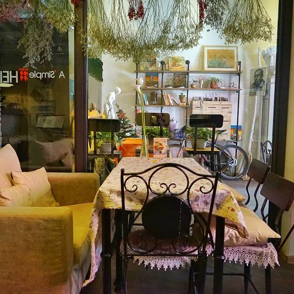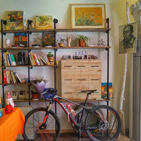 种草了一大波的咖啡厅,慢慢探店,这家店是在点评里看到的,便被其艺术氛围所吸引。来麦德龙购物,顺路来探店。导航定位很准确,一路跟着过来,步行大约十几分钟。店面的牌匾很醒目,一眼便看到了。整条街感觉并不是很热闹,虽然定位是步行街,感觉这边的客流量还是比较少的。虽然开在步行街上,环境还是很安静的,下午过来,店铺里面只有老板跟她的朋友,缓缓的背景音乐,安静不嘈杂,店面的设计很独特,细节也把握的很好。这家店在电视塔旁边,跟朋友喝完下午茶,还可以到电视塔看个城景,也是比较惬意的。感觉店家应该是学设计出身的,大门口的绘画大大的提升氛围,三层还有个绘画室,还会在这边举办绘画课。一层是咖啡厅吗,吧台式的装修,五彩的高脚凳混合沙发座椅,玻璃门外的植物物语增添了几分活力。他们家的主题是自行车主题,第一次看到这个主题的,感觉还是蛮有意思的。来个杯红茶,很适合在春风瑟瑟中赶路的我,格子桌布铺于桌面,很适合拍照。袋装红茶,置于热水中,茶色氤氲而出,弥漫开来。饮品整体中规中矩,没太多创意,味道偏苦,茶味浓厚。不过感觉店家需要在饮品和餐品上多下些功夫,感觉并没有太大的颜值吸引,虽说这种店的氛围环境比较重要,但是好的餐品才能继续为店铺加分。