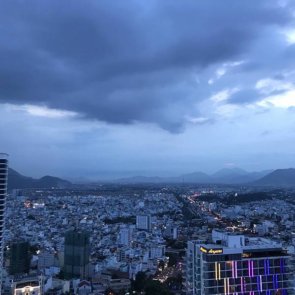 - sky light餐馆部分。标志性泳池。味道也还不错。天色慢慢暗淡,芽庄慢慢璀璨。高层远望芽庄夜景
