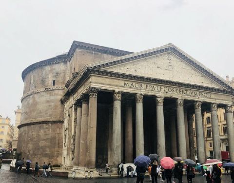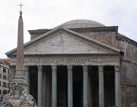 中间有一尊记功碑可以一窥古罗马的风格,经常有参观万神殿的排队人群络绎不绝
