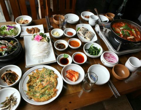- ...的,很有韩国的传统的风格,吃的东西非常的多,料理的种类非常的全,能够找到自己喜欢吃的还是挺好的