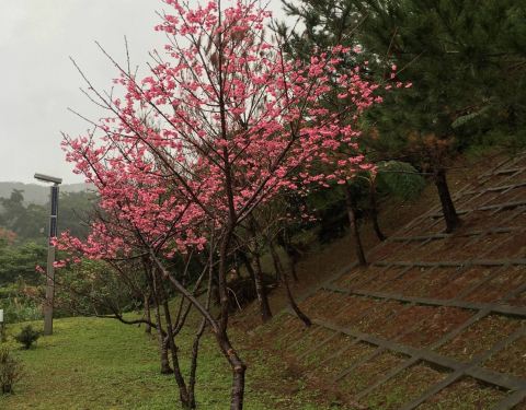 ...便植有七千多株寒绯樱,尤其在过了八重岳桥后,沿山路往上走,整个山头也被染成嫣紅色,景致甚是醉人