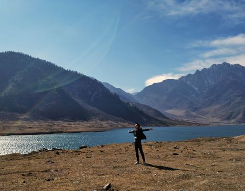 冶勒湖靠近四川石棉,位于凉山冕宁县境内的一座水库,但是后来有摄影师发现了此地,便把它叫做了湖,属于高原地区,海拔2600多米,非常的偏远,鲜为人知,很少有人前去游玩,所以也保存了最原始的自然风貌。早上10点钟左右便到了冶勒湖,风非常的大,吹得我耳朵直痛。在从成都出发之前也没有查到相关的天气预报,因为高原地区天气变幻莫测,我也是多亏了运气好,遇上了大晴天,即使这样还是蛮冷的,高原地区都是如此。不过个人认为最好的游玩时间还是在上午10点至下午2点之间吧。不知为何,到了冶勒湖让我有一种西藏纳木错的即视感,虽然我也没有去过纳木错,都是通过文字图片的了解,可是眼前的此番景象实在太美~没有人为的修建、没有商业的喧嚣.....来之前,并没有想到有这么美,网上的资料图片也是寥寥无几的。冶勒湖虽然居住着少数的彝族人,但是周围并没有卖吃的,就连小卖部都没有,所以去的时候可以适当带一些面包牛奶之类,我由于没有前车之鉴,只有挨了一顿饿,不过这一趟即使挨饿还是很值得的。我向当地的居民了解到:冬季的冶勒湖应该是最美的,虽然气温很低,但是会下大雪,雪山倒映在湖里,草垫上面也是白雪皑皑,想想就已经很美。如果天气好的时候,晚上是很有可能看到星空的噢~我是一个处女座,对拍摄景色是要求完美的,独自沿着湖边徒步了很久,要知道在高原地区徒步是很累的,但好在我坚持了下来,已经顾不得衣服有多脏,好在我认为我应该是看到了最美的冶勒湖,此时此刻感觉就只剩下我一个人站在离冶勒湖最近的地方,安静得只听见风吹的声音,晒着太阳发着呆,一切纷扰与我无关。小贴士