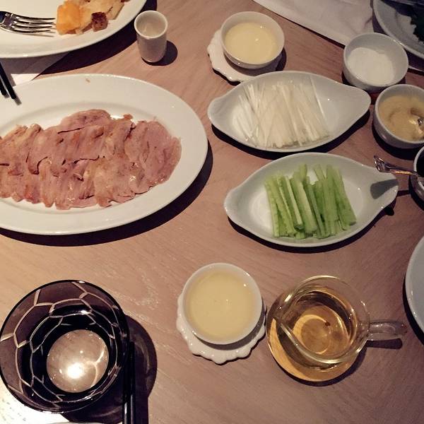 2018年跟小伙伴的第一次聚餐选在了高大上的柏悦酒店48楼的潮餐厅。每年都办杭州凯悦酒店的美食会会员卡,虽然同属Hyatt 集团旗下,可惜在同城的酒店之间不可以共享会员折扣,反而异地的可以共享。 跟杭州唯一排名亚洲前50的餐厅,杭州凯悦酒店的湖滨28相比,柏悦酒店的潮餐厅装修更现代更时尚,地理位置各有千秋,前者靠近西湖,后者地处钱江新城,但是在湖滨28里用餐是看不到湖景的,而潮餐厅在48层高楼上,可以一边用餐一边欣赏夜景,钱塘江,莲花碗,大剧院,会展中心,来福士等尽收眼底。 招牌菜北京烤鸭,一出炉就香气四溢,厨师当场切片,鸭皮鸭肉都片成很薄的一片片,拿张薄饼,夹一片鸭皮一片鸭肉,涂点烤鸭酱,放点京葱和黄瓜条,卷起来吃,美味不亚于北京前门大街上的正宗全聚德烤鸭。 烤鸭的鸭架没有煮汤,做成了椒盐鸭架,吃起来香香脆脆的。 冰镇生蚝是服务员推荐的,很新鲜的吉拉多,挤点柠檬汁就可以吃了。 帕尔玛火腿配蜜瓜,摆盘很精致,第一次吃到火腿配蜜瓜,火腿的鲜咸搭配蜜瓜的清甜,真是意想不到的美味。 有机春鸡,选用的是一斤左右的童子鸡,烤的外脆里嫩。 菜心选了上汤做法,菜心很新鲜很嫩,颜色碧绿,看起来很有食欲。 厨房就在餐厅里,不设玻璃隔墙,顾客可以近距离看厨师做菜,让顾客吃的放心,只有足够自信的餐厅才敢这样操作。 湖滨28主要是做中餐,以杭帮菜为主,而潮餐厅中餐西餐都有,用餐感受比湖滨28更好,以后有机会还会再次光顾。