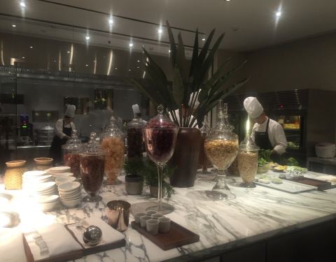 - 今天早上的自助早餐,就是在潮厅用的。厅堂佈署得体,干净整洁。杭州柏悦酒店