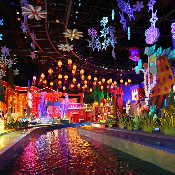 【亲子推荐】★★★★☆【必去理由】室内游船项目,和家人坐在小船上沿河道前进,耳边是悦耳的歌声,民族特色布景创意满分,穿着传统服饰的小机器人萌态十足,带你领略56个民族的风土人情。