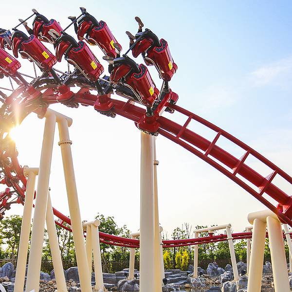 【亲子推荐】★☆☆☆☆【必去理由】过山车项目,通体红色的过山车看起来个性十足,与普通的过山车项目不同的是,这是一个悬挂式座椅的飞行过山车项目,悬挂的过山车对于重力的感知更加明显,更加挑战你的心跳。