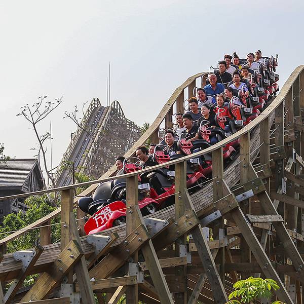 【亲子推荐】★☆☆☆☆【必去理由】丛林飞龙是目前福建省内最大的木质过山车……什么,木质过山车?你能想想吗,它除了核心结构外,通体都是用木头拼接而成的,在极速穿行的过程中给你带来视觉上和心理上无限的刺激感。