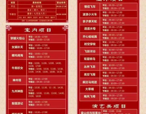 ...,孩子玩的很开心,女娲补天玩了两次,很好玩,九州神韵很棒,还有牛郎织女画面感太强烈了,很美很美工作日去的,没什么人,基本不用排队,孩子玩的很开心,女娲补天玩了两次,很好玩,九州神韵很棒,还有牛郎织女画面感太强烈了,很美很美