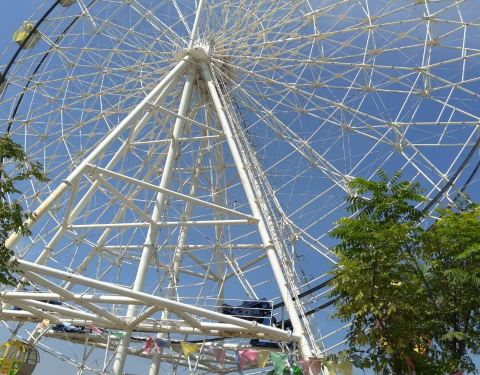 带孩子去玩的,很不错,景色很美,有摩天轮,小火车,冰雪世界,马场,迷宫,游乐场,人造海边沙滩等,门票不包含里面游玩项目,里面项目都要收费,小树林里很凉爽可以休息盒饭25元一份,除了热其它都还好