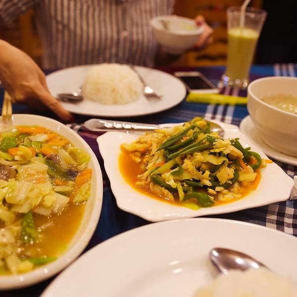 拍了两张发现因为昨天坐夜巴,一晚上没充电,相机没电了,只好骑回旅馆吃饭。旅馆斜对面有家很不错的餐馆,干净好吃,好像叫Shwe Moe Restaurant(就在旅馆出门右手边的对面),牛油果汁也不错,可以连喝两大杯那种,我们在蒲甘的所有吃饭问题都是在它家解决的。 下面那张是某日晚餐,阿树拍的。