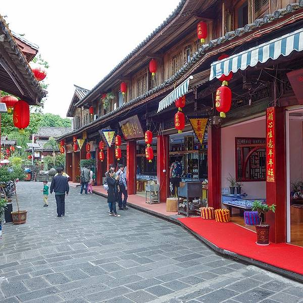 棕包街是一片仿古建筑的 已形成集赌石,品茶,泡吧,美食等为主的旅游,休闲中心。 全木结构的仿古建筑依水而建,迂回曲折又错落有致,加上跨水而建的的小拱桥,在流水作用下不停翻转的水车,或单株或成林的小竹林,盛开的三角梅比比皆是,一派江南水乡美景。并为它取了个颇具特色的名字:“棕包街”。 漫步在小镇街道上,看到这里现代与传统相互交织在里面,商铺一个个紧紧相连,当看到里面摆放的玉石,玛瑙,翡翠商品,估计那一家也得有几百万家产。不大的小广场中间矗立着很高的杆子,上面用五彩旗拉着,杆子下面是一盆已经燃尽的木炭,可以看出,这里昨天晚上可能开过篝火晚会,而这个很高的杆子可能就是当地,少数民族表演上刀山,下火海节目表演。赌石在这里而出名,因赌石的存在而有了一种暗流涌动的感觉。当然这也是赌石的乐趣和文化。