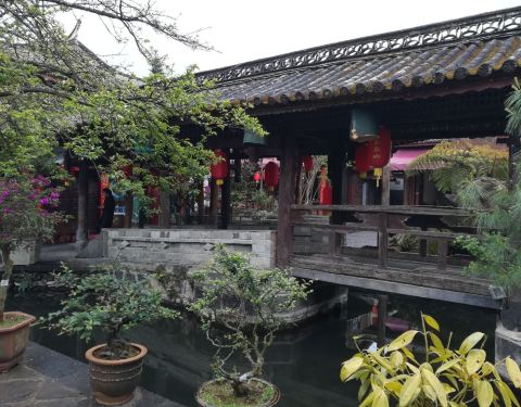玉泉园附近的风情街,街边都是玉石翡翠铺子,家家都有赌石,如果好这个,这边就来对了。 当然,如果对这个不感兴趣,可以来看看景色。这边建筑有点江南小园林的感觉,曲水小桥,花木掩映,感觉不错。