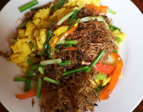 这是同住青旅的老外推荐给我们的(居然被老外推荐中国菜),一进去,和气的阿姨和奶奶给我们介绍了各种特色菜,说一定要吃香茅排骨(可惜上一顿刚吃过),两人最终点了:开花洋芋,蒸洋芋花,茭白小炒肉。坐在桌边等候,一阵阵炒菜的香气飘过来~每道菜扮相朴实,像在家吃饭一样,呼啦啦消灭了三盘菜