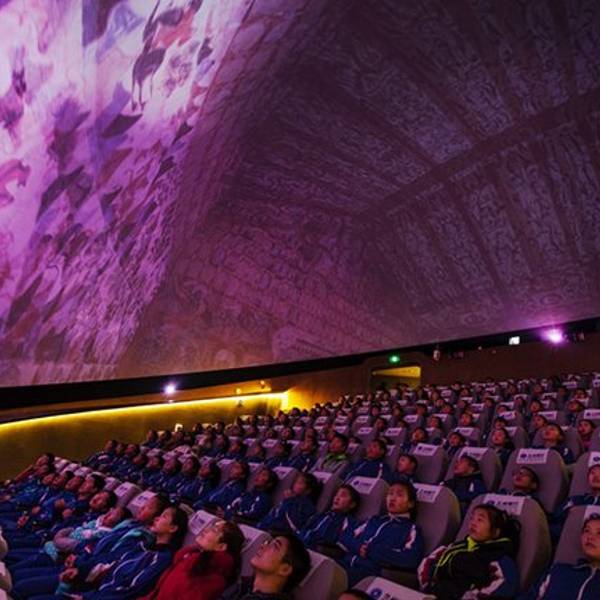 第二场5D球幕电影《梦幻佛宫》,以高科技真实还原洞窟场景。