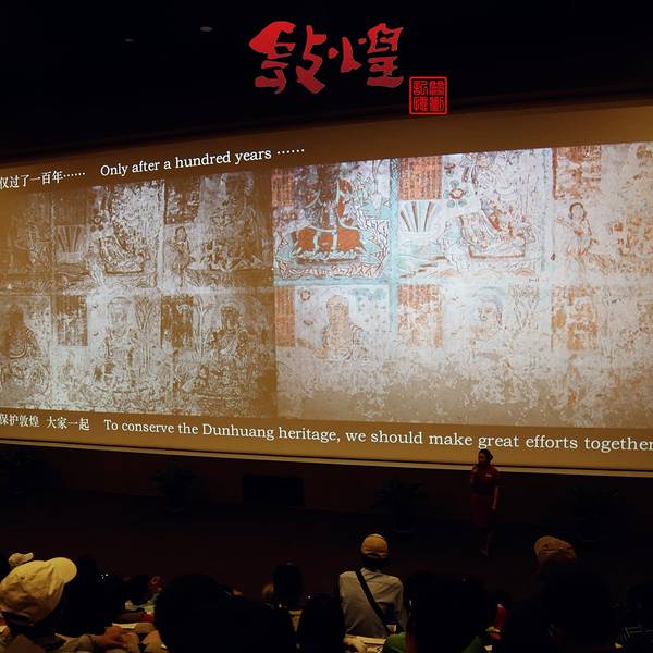 莫高窟数字展示中心。在这里看两部影片。出发莫高窟。