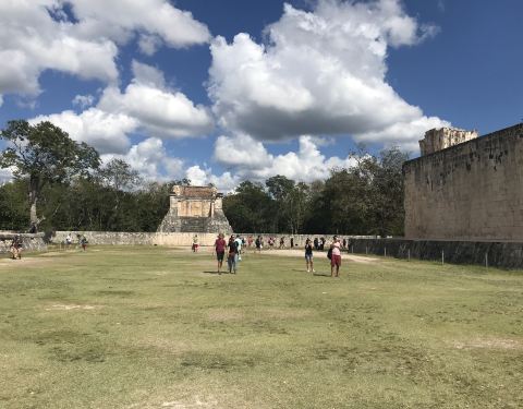 玛雅世界崇尚蹴球技艺,奇琴伊察蹴球场是中美洲各地现存玛雅遗址中最大的一座,球场面积几乎是现代足球场的两倍左右。现存的两边围墙是古代遗留的一部分,当时的球场是被四面围墙包围着的,君主台位于球场的尽头...