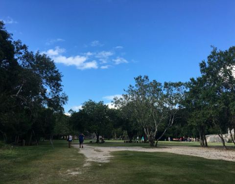 齐秦一查遗址中的橡皮球场,是当时古城中人们进行比赛的运动场。据考证橡皮球运动在玛雅后期非常的盛行,而高高的柱台就是贵族们欣赏比赛的地方。下方的球场非常的大,也很平整,仿佛能够感受到当时比赛的激励,视野真的非常好。