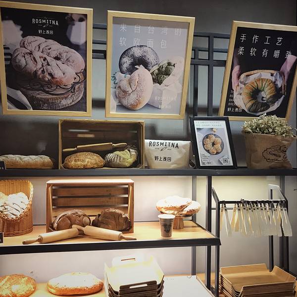 最近很火的一家网红面包店。每次下午过来,店里面的面包可选择的种类就已经不多了,火爆程度可想而知。而且他们家也提供外卖,如果不能自己过来买,也可以一键到家,折扣有时会比到店购买大很多。 这家店铺也可以购买代金券,会有8折优惠。野上麦田已经在西安开了很多家了,店铺遍布东西南北郊,这家店位于粉巷,从南大街路口往西走约200多米。一直很喜欢这家面包店的装修风格,很文艺,很有味道。每家店铺都是两个柜台,旁边便是工作室,透明的玻璃窗,所有程序一目了然。 下午过来,选择也不是很多了,便让店家帮忙推荐了几款。香蕉巧克力甜心和冰面包是他们家的新品,便各来了一份,冰面包里面是淡奶油,多少会有些甜腻感。香蕉巧克力甜心很棒,口感很有韧劲,浓浓的香蕉水果香。