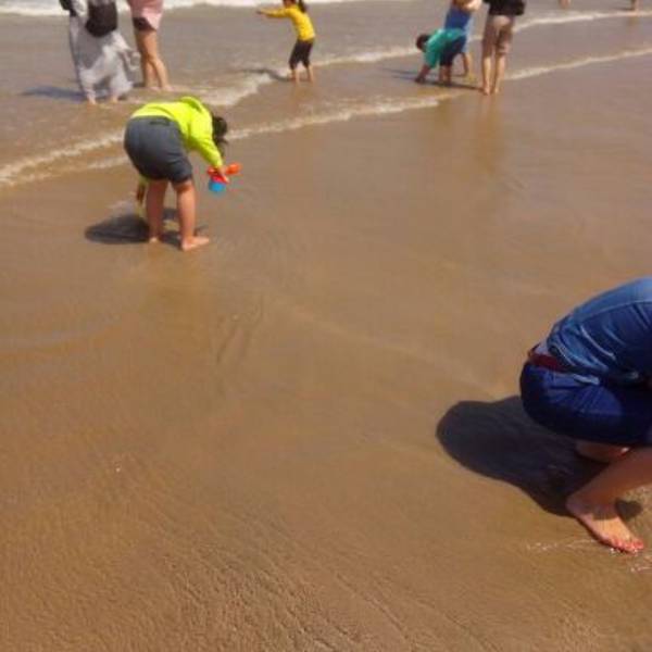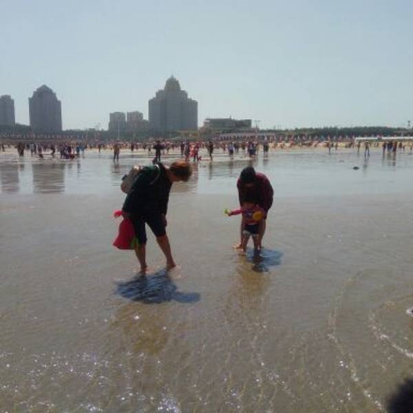 人多,风大,有太阳的话拍照简直不要太美啊,,海蓝蓝天蓝蓝!小朋友激动啊,到沙滩后狂挖坑记得墨镜必备,小朋友也要备墨镜的。停车场很大,当然车也很多