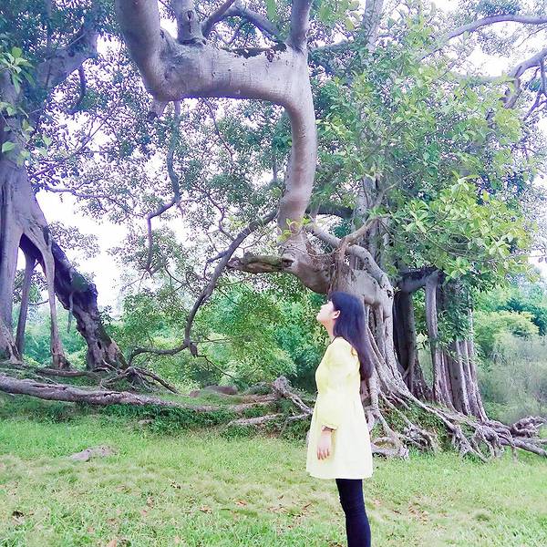 在明江镇心满意足的吃完各种特色小吃,驾车来到洞廊村。 宁明洞廊村有颗巨大的古榕,也称洞廊古榕,又名“独木成林”。传说为仙女所栽。据宁明县志记载这棵榕树竟有着一千七百多年树龄!独木成林是上天赐给宁明的一棵神树。大榕树除主干外,还从枝干上生出许多柱根插入土中,支柱根又变成了另一棵树,形成树生树,根连根的壮观景象。她“母生子”,“子生孙”,一天天地成长自繁成林,成了鸟类的天堂。她饱经风雨,历尽沧桑,仍苍劲巍立,令人肃然起敬,堪称是世界古榕奇观。每年三月三,树下也是壮乡人民歌圩情恋的好场所。
