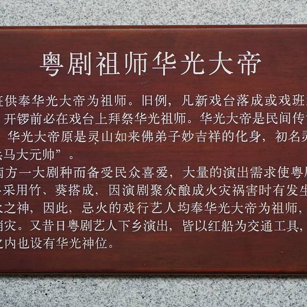 展示了粤剧文化丰富的内涵和独特的魅力。广东粤剧博物馆坐落在禅城兆祥黄公祠,是国内首座大型粤剧博物馆广东粤剧博物馆坐落在禅城兆祥黄公祠,是国内首座大型粤剧博物馆。分为史、艺、人三大部分,藏有上万件粤剧文物。展示了粤剧文化丰富的内涵和独特的魅力。华光大帝被视为粤剧祖师爷。馆内有一尊华光贴金塑像,每...广东粤剧博物馆坐落在禅城兆祥黄公祠,是国内首座大型粤剧博物馆。分为史、艺、人三大部分,藏有上万件粤剧文物。展示了粤剧文化丰富的内涵和独特的魅力。华光大帝被视为粤剧祖师爷。馆内有一尊华光贴金塑像,每年“华光诞”接受粤剧艺人祭拜。 展开