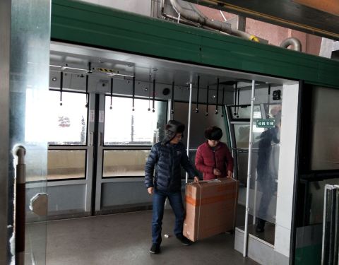 索道有两种,一种是载客量很大的大索道,附近还有每车坐六人的小索道,旺季坐的人超多,都要排两个小时的队