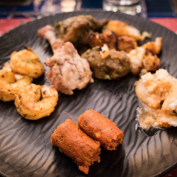 在阿格拉有两家餐厅让我念念不忘,一家有美食,一家有故事。 有美食的餐厅叫Bon Barbecue Restaurant,看名字就知道了这家主打是烧烤,但最重要的是这里有肉啊,而且是不限量的自助烤肉!!!对于一个在印度已经一周没怎么吃到肉的人来说,这家店就是人间正义宇宙中心!!!