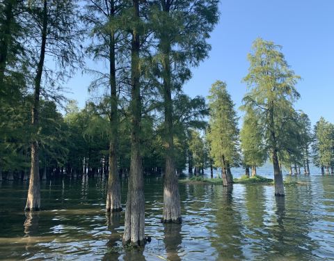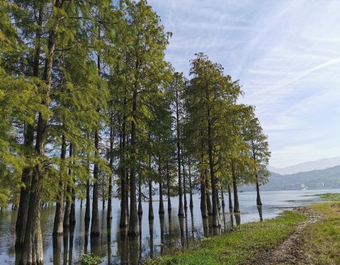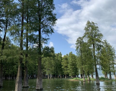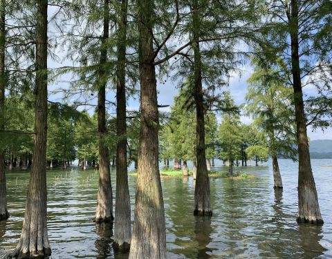 水好清透,水流撞击岸边发出特别舒服的声音!四明湖……很美的湖。杉树长在水里,很美很靓四明湖……很美的湖。自驾开到村口附近,步行走进去一览无疑。湖是一级水源保护区, 干净宁静, 拍照胜地。水好清透,水流撞击岸边发出特别舒服的声音!杉树长在水里,很美很靓。虽然我们没有欣赏到秋冬季红杉林的...四明湖……很美的湖。自驾开到村口附近,步行走进去一览无疑。湖是一级水源保护区, 干净宁静, 拍照胜地。水好清透,水流撞击岸边发出特别舒服的声音!杉树长在水里,很美很靓。虽然我们没有欣赏到秋冬季红杉林的艳丽,但这春夏之际,蓝天、绿意与映照一切的湖光,让人赏心悦目,好喜欢这个湖和这片林....... 展开