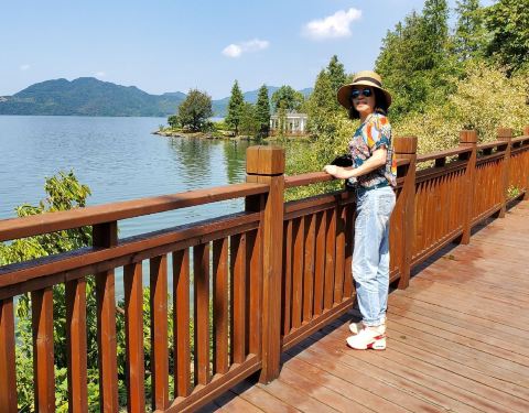 四明湖风景,感觉又晒黑了!水好清透,水流撞击岸边发出特别舒服的声音四明湖风景,感觉又晒黑了!水好清透,水流撞击岸边发出特别舒服的声音!虽然没有秋冬季红杉林的艳丽,但春夏之际,蓝天、绿意与映照一切的湖光,也极让人舒心的