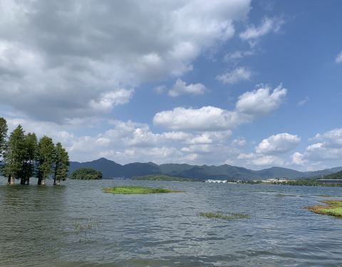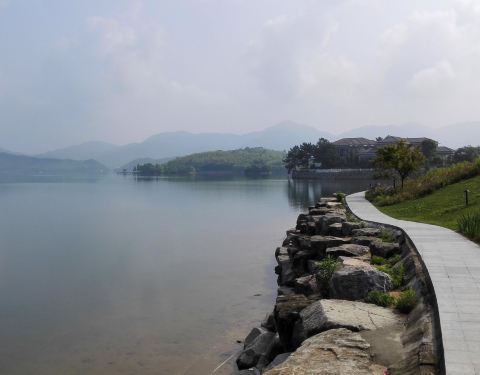 位于四明山北部余姚梁弄镇的四明湖,四周峰峦叠嶂,湖水碧波荡漾,湖面面积将近20平方公里