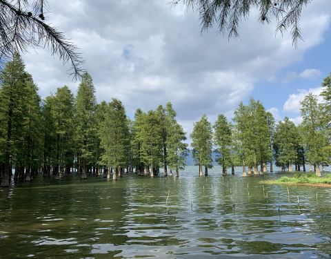 没有门票。中秋节假期去的,很美的湖。拍照胜地。杉树长在水里,很美!很干净很宁静的感觉。有人在里面露营中秋节假期去的,很美的湖。我们住在镇上,自驾开到村口附近,步行走进去的。没有门票。湖是一级水源保护区。很干净很宁静的感觉。有人在里面露营。拍照胜地。杉树长在水里,很美!
