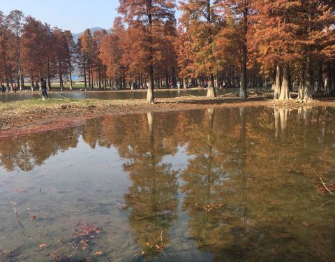 从宁波导航直接导到水杉林,现在的水杉红的非常好看,美不胜收啊!好多拍照的,风景如画从宁波导航直接导到水杉林,现在的水杉红的非常好看,美不胜收啊!好多拍照的,风景如画。而且景区免费,停车也免费,真是个休闲旅游的好去处。赞赞赞!!