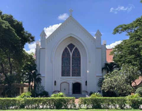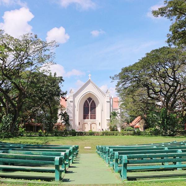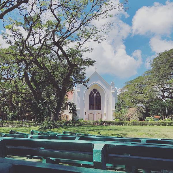 学校的网红景点:教堂前的绿色长椅。Siliman University西利曼大学Siliman University西利曼大学