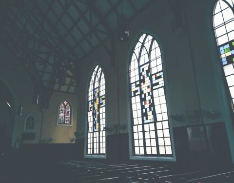 学校的网红景点:教堂前的绿色长椅。因为是周末所以学校教堂没有开放。