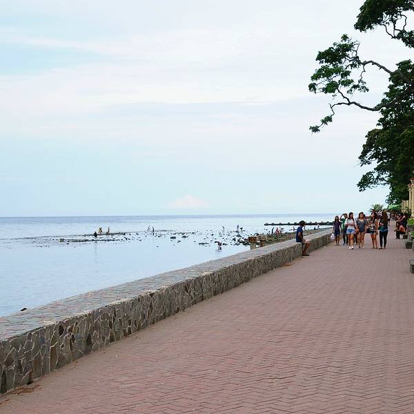 市中心沿海的一条步道,Rizal Boulevard的一侧,承接了市民公园的作用,常有游客和市民在此散步、拍照、休憩。大道上有I Love Dumaguet的城市网红标志和圣保罗修女的雕像,到了夜晚这里又化身为热闹的夜市大排档。杜马盖地的海虽不算漂亮,但也还干净,仅有的远处天边白云和无处遮挡的阳光,呈现出一幅慢生活的面貌。