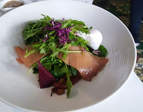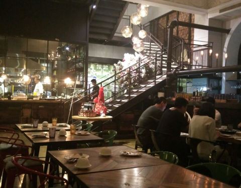 装修比较精致,古典和现代的结合,主要是吃环境的一家店,但是菜的味道还可以。华夫饼还是非常好吃,三文鱼萨拉也很不错,榴莲披萨很不错,大块大块的榴莲吃的超级满足。