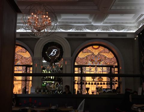 路过民园的时候来了这家西餐厅,一开始是想来看3d小厨师的,后来被告知没有活动了,于是就想着随便点点儿什么,发现菜单已经变了,比之前少了些菜品,最后点了个北海道带子和鹅肝,还有栗子蛋糕和树莓,鹅肝味道还可以,其他的味道很一般,感觉虽然价位不低,但是味道却没有符合这个价位,不过吧台那的彩绘玻璃是真得很好看,手机没有拍出效果。