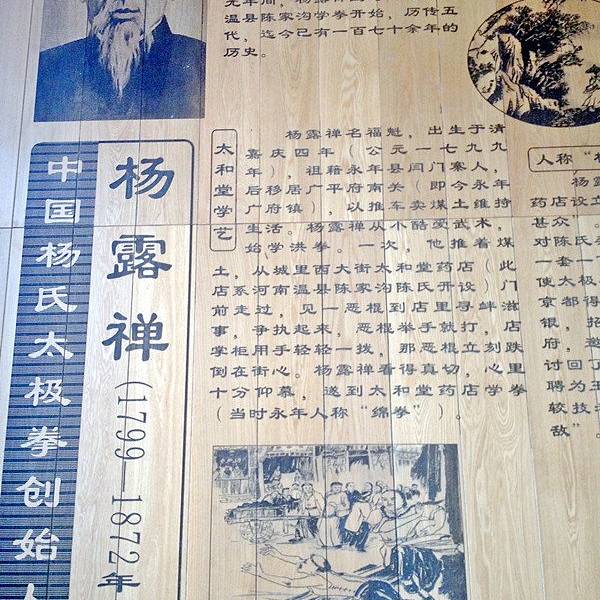 1991年在原来的地址新建,左右厢房是对杨露蝉及后代的生平轶事介绍和永年太极的发展。正屋则是厅堂,但肯定是后人遐想。后院是个太极学校,一些太极爱好者在此切磋学艺。