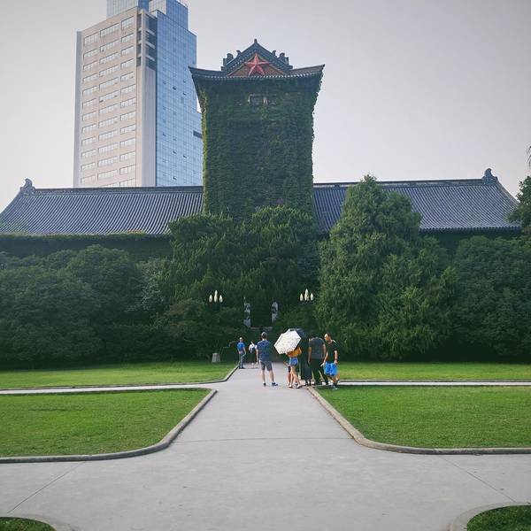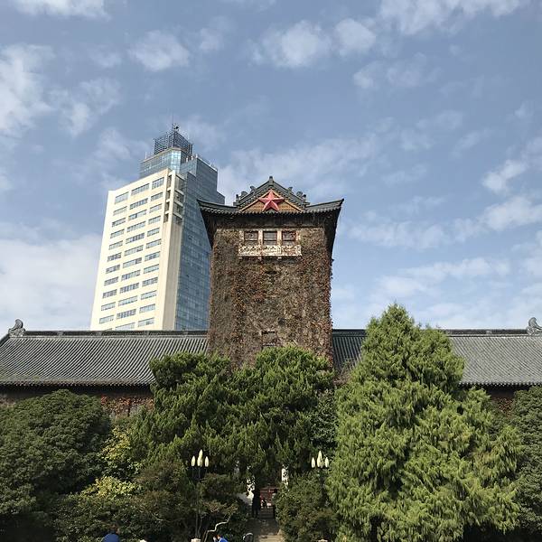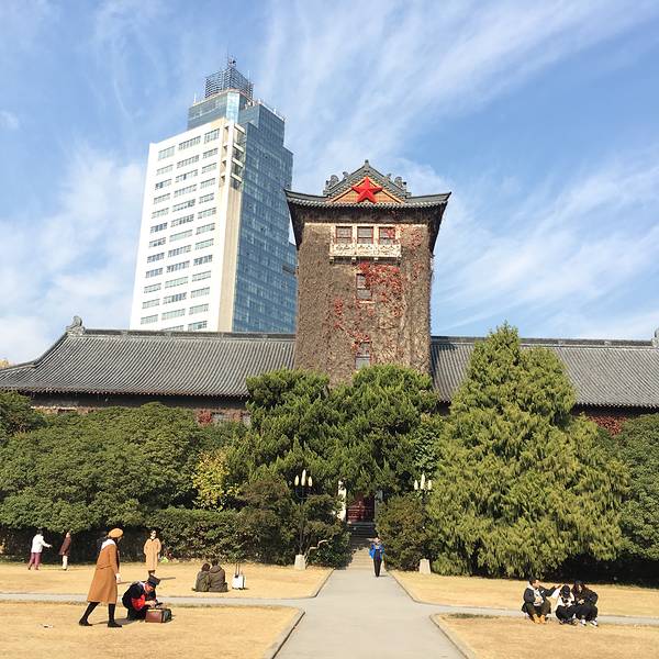 南京大学鼓楼校区就是以前的金陵大学旧址,整个校园有很多民国时期的建筑甚至是年代更久远的建筑,但我这种学渣是分别不出建筑的风格以及年代的,反正就是古朴有年代感。校园里有大楼(我称他为钟楼)楼顶有一颗红色五角星,我去的时候是冬天,灰褐色的青砖上缠绕着一圈圈的植物藤曼,回家所搜才发现那是爬山虎,所以如果你来,建议你夏天来,满墙的绿色爬山虎围绕烘托着一颗闪闪红星,那景色该多美多有意境啊。整个校园绿植非常丰盛繁茂,大礼堂、小礼堂、排练室、教学楼、科研楼、创意工坊都隐藏在郁郁葱葱的树林里花草间,突然觉得能在这里度过4年的光阴也是一种幸福