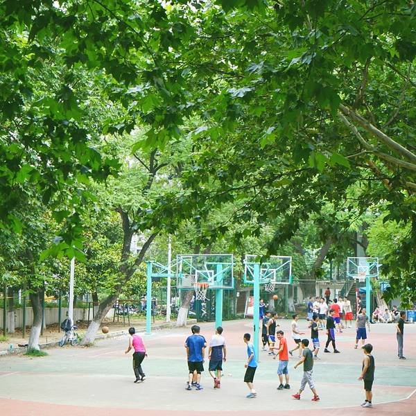 由于我们俩是坐公交车过去的,没有到正门,从一片宿舍区穿了过去,我和薇丫是高中时期的同桌,这一走勾起了许多学生时代的记忆。鼓楼校区还是很有年代感的,一路山一直在寻找这个标志性的建筑。来的时间不对,叶子还没有长出来,只能远远的拍张照了,哈哈。