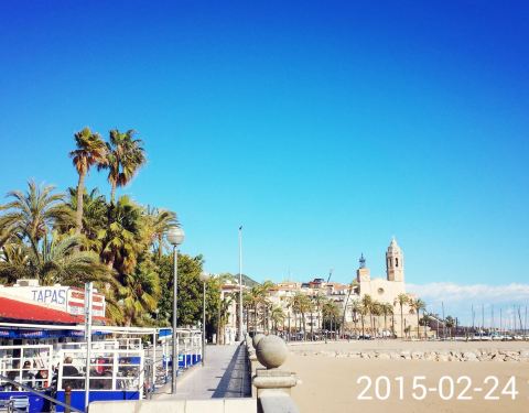 沿着海岸线,沿途有好多的别墅和公寓,可以想象,在夏天这里是个非常热门的度假胜地锡切斯的海边非常美海岸线又长,沿着这长长的海岸线,种了长长一排的椰子树,特别有热带海边风情。沿着海岸线,沿途有好多的别墅和公寓,可以想象,在夏天这里是个非常热门的度假胜地。