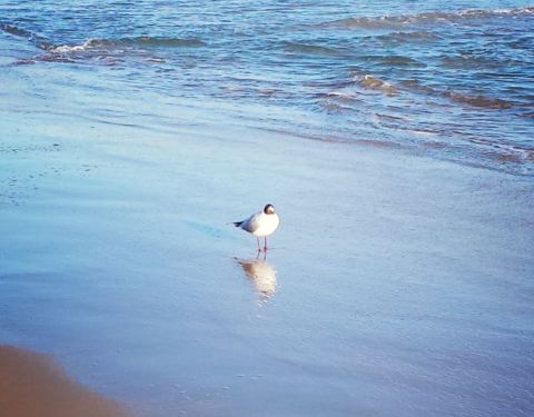 ...离巴塞罗那差不多一个小时车程的海边小镇,这里的海滩非常平缓,海滩区域相当大,海天相接,非常空旷
