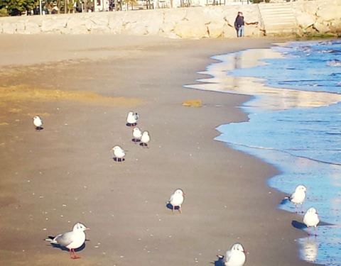锡切斯是,距离巴塞罗那差不多一个小时车程的海边小镇,这里的海滩非常平缓,海滩区域相当大,海天相接,非常空旷。夏天,应该是巴塞罗那人在这里做日光浴,以及各种海上运动的好场所。