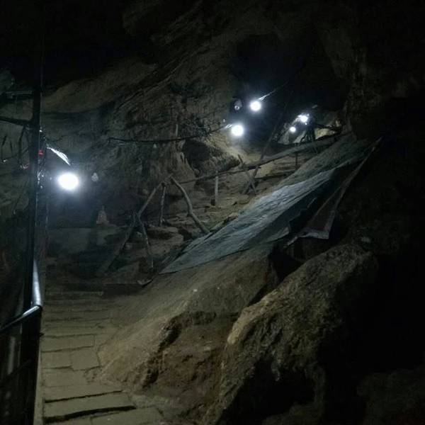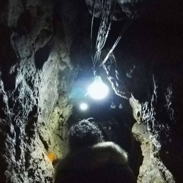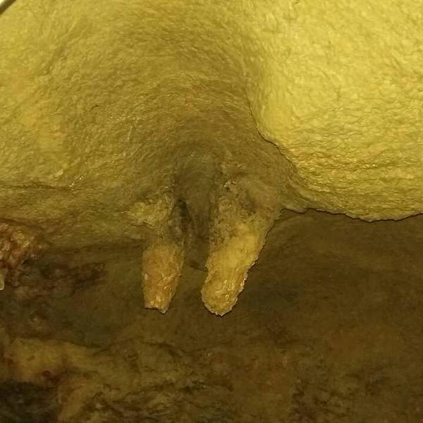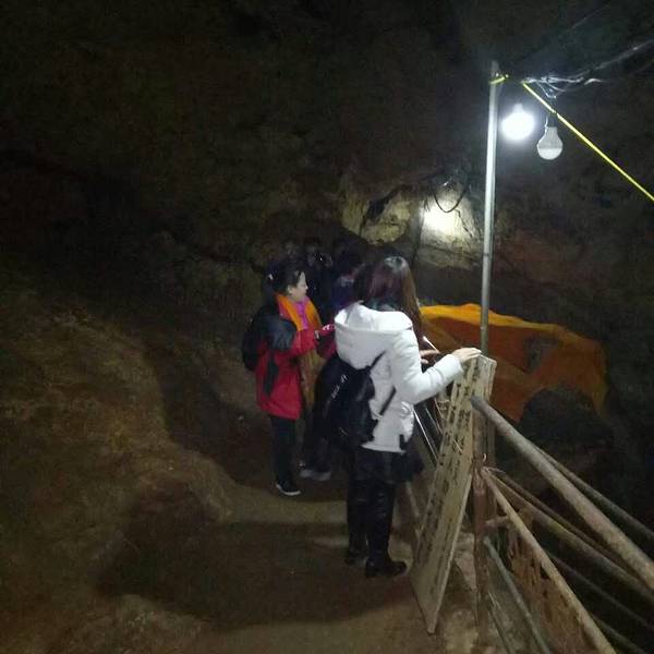 洞内地势高低不平,进深170米,分成两个大的洞室。距洞口16米有一悬石,距地面0.58米,把洞切成两个入口,左高右低。第一个洞室在洞深70米处,洞室宽阔,可容纳百余人,右侧有一个大坑,当地人称做"天井",传说中是"七仙女浴池"。天井深约七、八十米,坑内无水有空气。第二个洞室在130--150米处,洞室右侧有9米长的水泥平台,石壁上有钟乳石垂挂,远看象两个并肩而立的人像,高4米,宽2.4米,向前走山体呈上坡,到达天棚区,即洞的尽头。