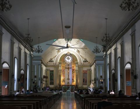 一个比较有历史感觉的钟楼,不过现在的话,只能够过广播了,好像也不会再敲钟了,就在一个教堂的旁边,也就是作为这边的一个地标性的标志,旁边就是一个非常热闹的市场。 这边不时的有人过来这边放蜡烛,还有说香火,但是整体来说,里面还是比较安静的,平常也比较少人过来。 这边附近,如果是傍晚的时候四点多五点会比较的堵车。