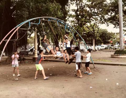 不过外面这位弹讨的老先生有点犀利啊,还有那个会过来要钱的孩子,他们会一对面的秋千上玩耍,有另一种感觉