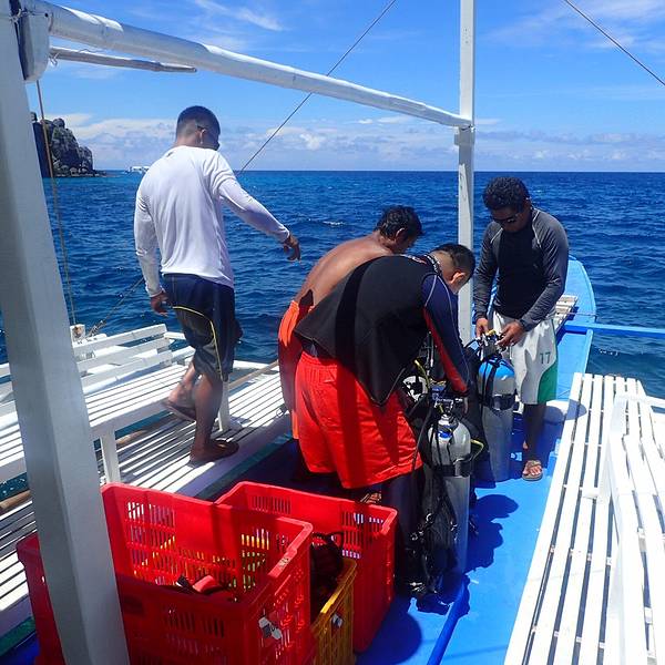 深浅套餐则根据潜水次数收费,一般一潜1500P,两潜2800P,三潜3300p,也是提供往返交通、潜水装备以及午餐。在价格的诱惑下我们最终选择了三潜。(汇率1人民币≈7比索)