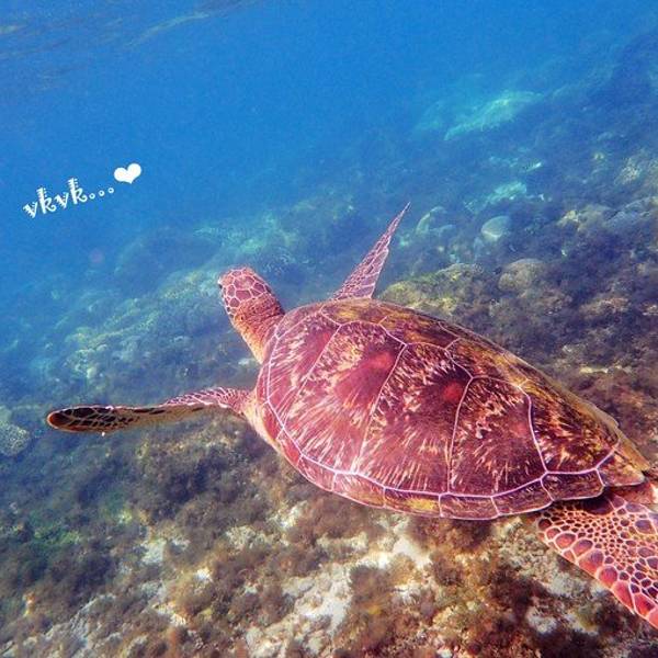 来这里之前就是冲着大海龟的,果然有好多,都不用人指点就能看到来这里之前就是冲着大海龟的,果然有好多,都不用人指点就能看到。其实这个小岛没过度开发,所以很洁净,让我记忆最深刻的就是清澈至极的海水,水里的动物看得一清二楚。
